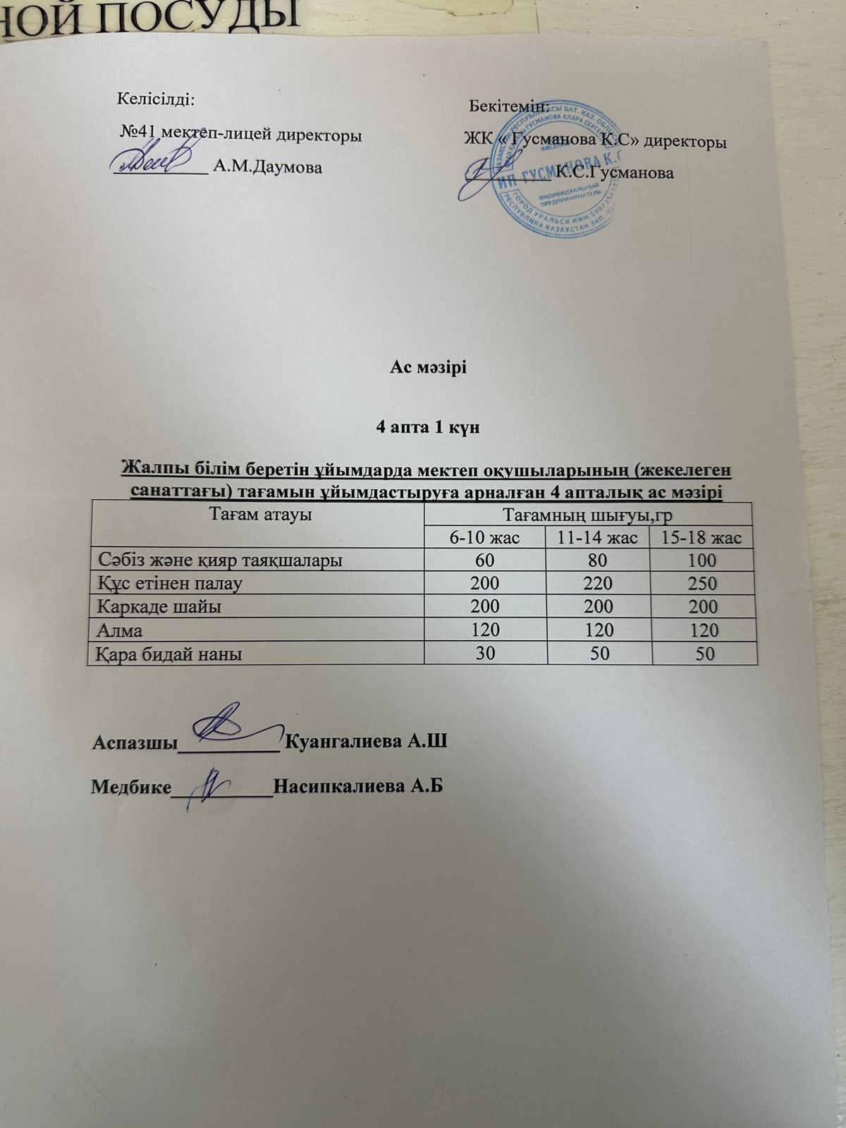 2025-2026 оқу жылы Әлеуметтік жекелеген санаттағы оқушылардың ас мәзір