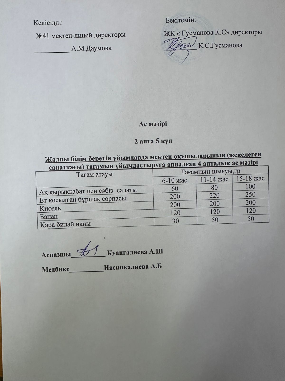 2025-2026 оқу жылы Әлеуметтік жекелеген санаттағы оқушылардың ас мәзір
