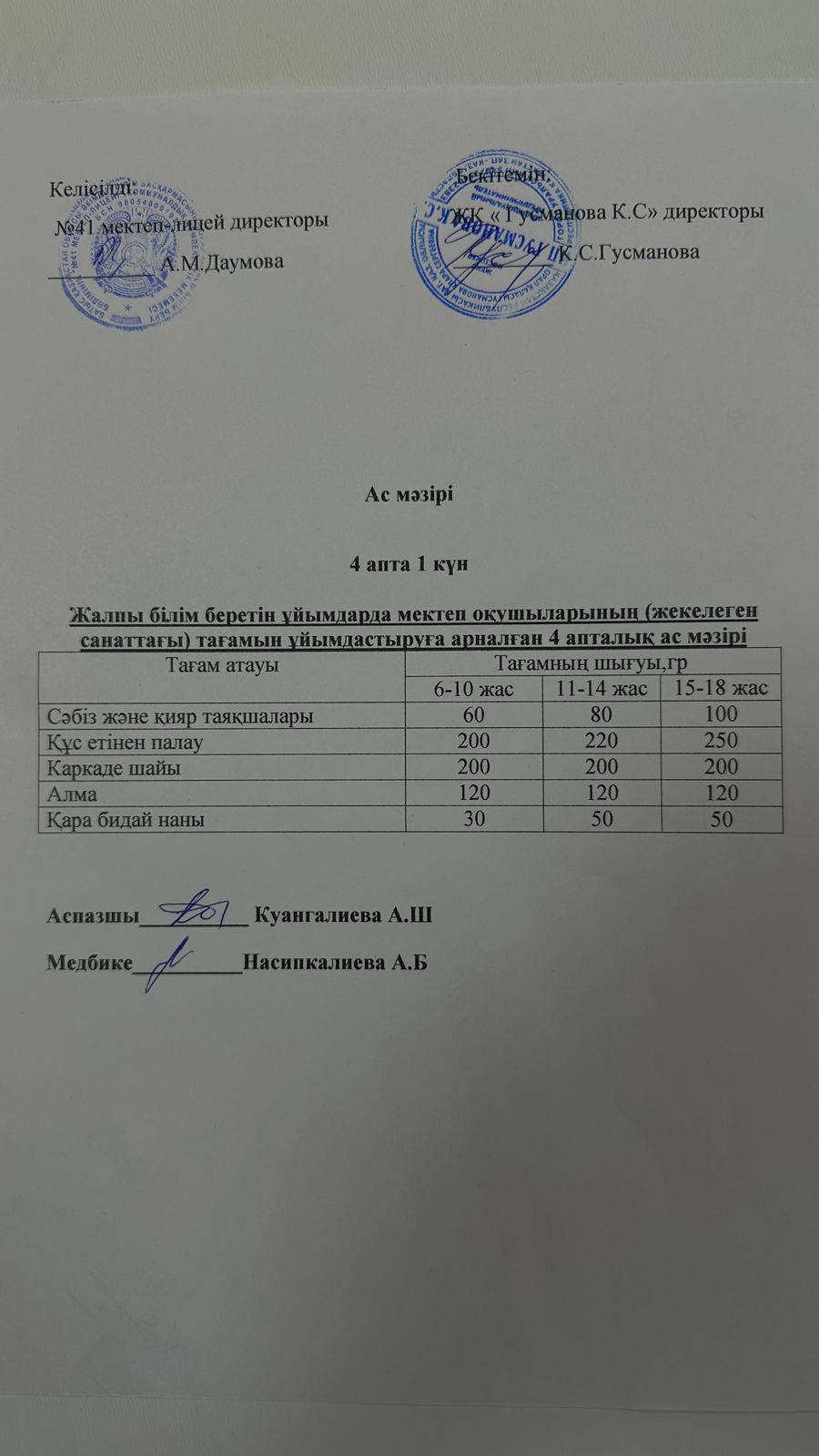 2025-2026 оқу жылы Әлеуметтік жекелеген санаттағы оқушылардың ас мәзір