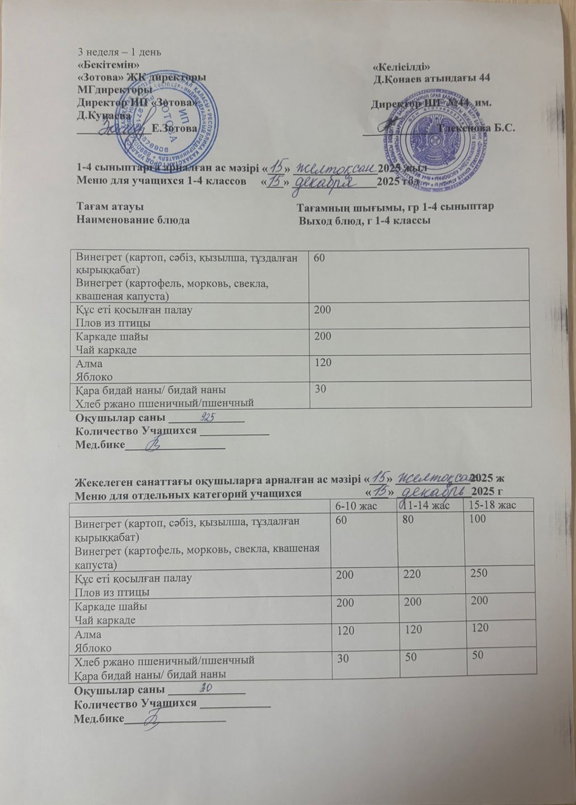 2025-2026 оқу жылы Әлеуметтік жекелеген санаттағы оқушылардың ас мәзір