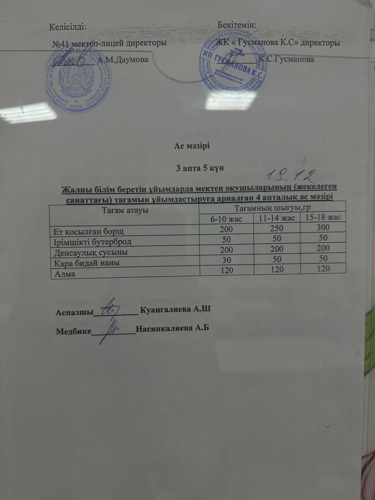 2025-2026 оқу жылы Әлеуметтік жекелеген санаттағы оқушылардың ас мәзір