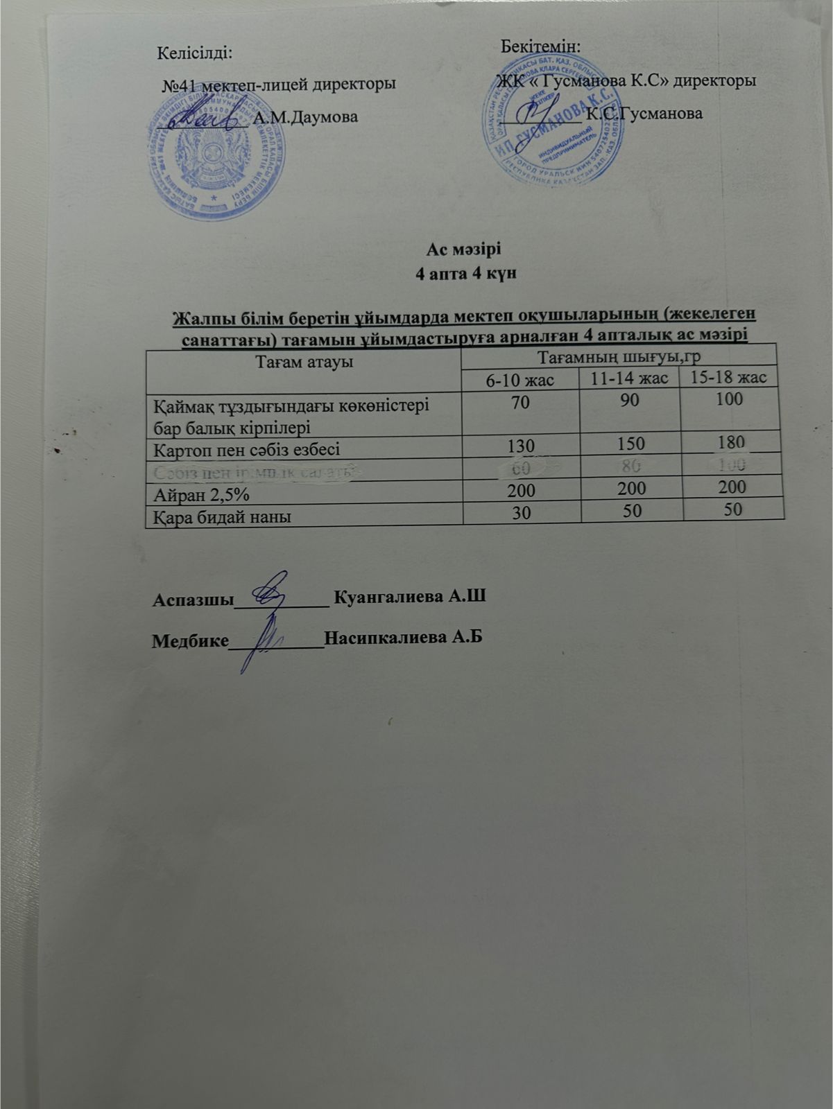 2025-2026 оқу жылы Әлеуметтік жекелеген санаттағы оқушылардың ас мәзір
