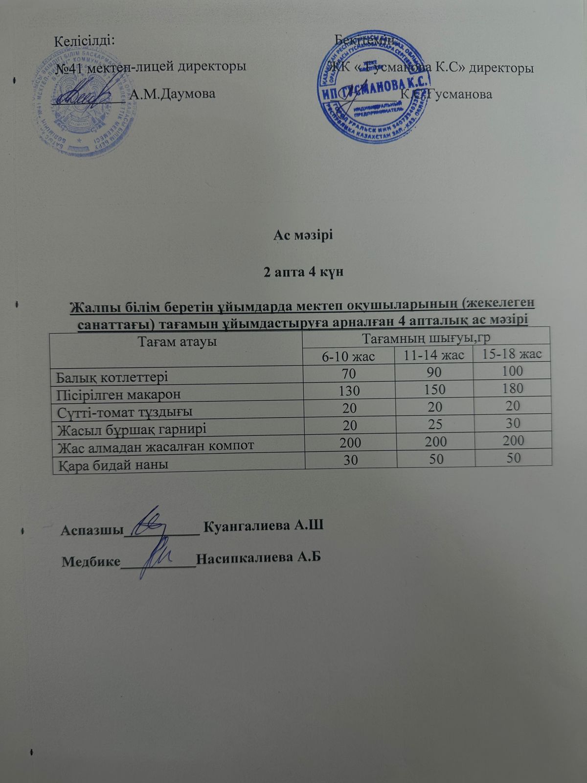 2025-2026 оқу жылы Әлеуметтік жекелеген санаттағы оқушылардың ас мәзір