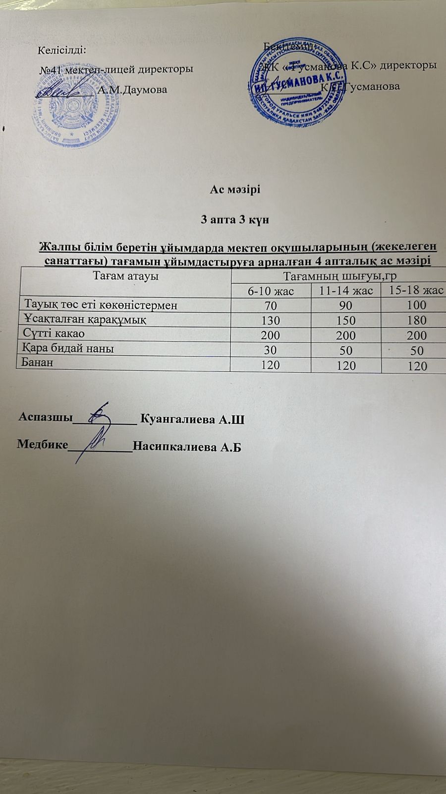 2025-2026 оқу жылы Әлеуметтік жекелеген санаттағы оқушылардың ас мәзір