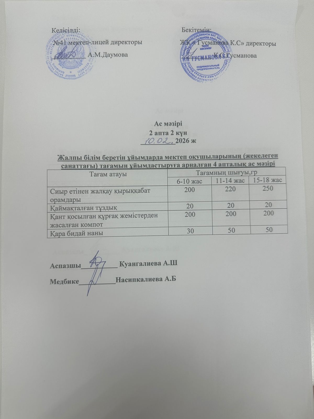 2025-2026 оқу жылы Әлеуметтік жекелеген санаттағы оқушылардың ас мәзір