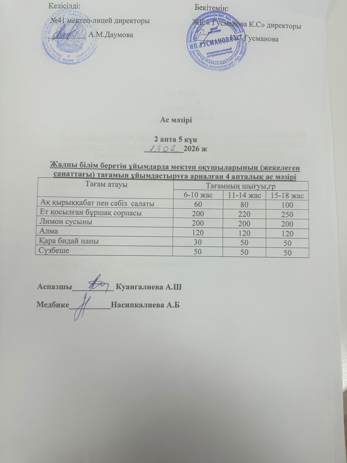 2025-2026 оқу жылы Әлеуметтік жекелеген санаттағы оқушылардың ас мәзір