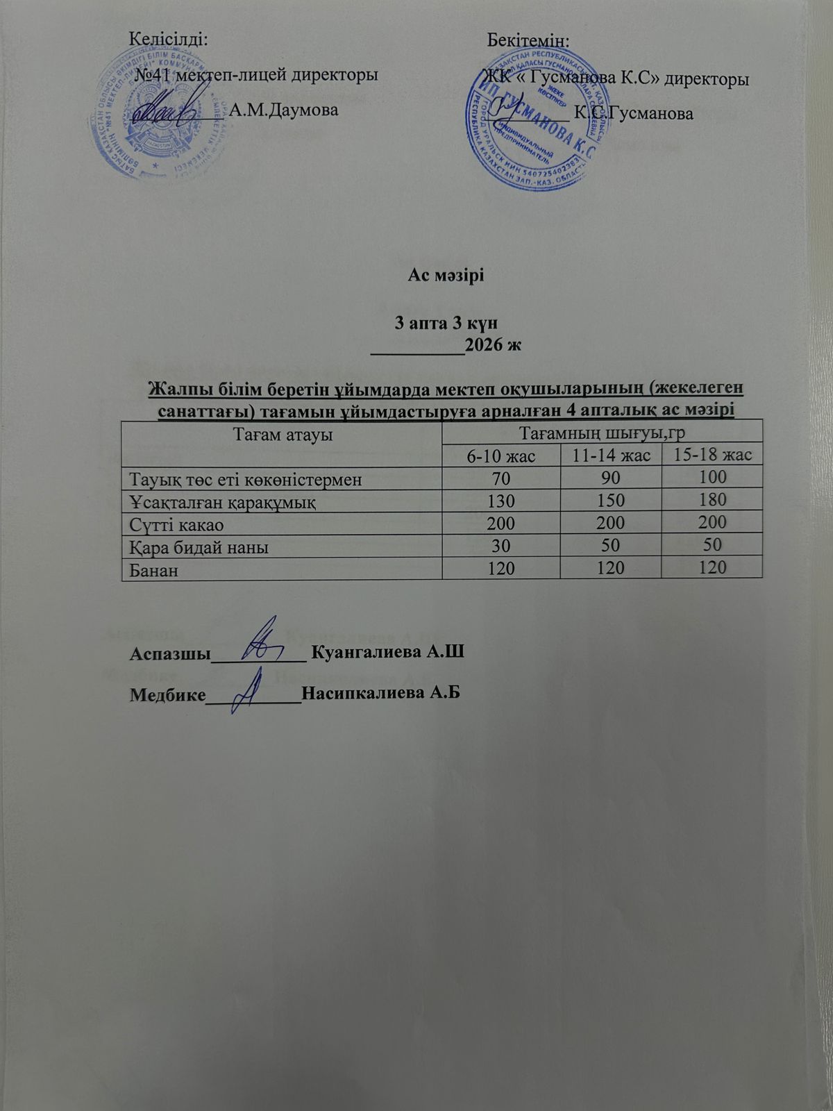 2025-2026 оқу жылы Әлеуметтік жекелеген санаттағы оқушылардың ас мәзір
