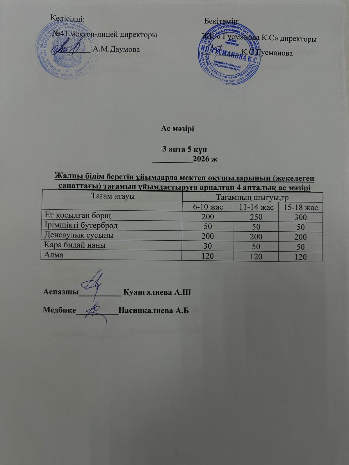 2025-2026 оқу жылы Әлеуметтік жекелеген санаттағы оқушылардың ас мәзір