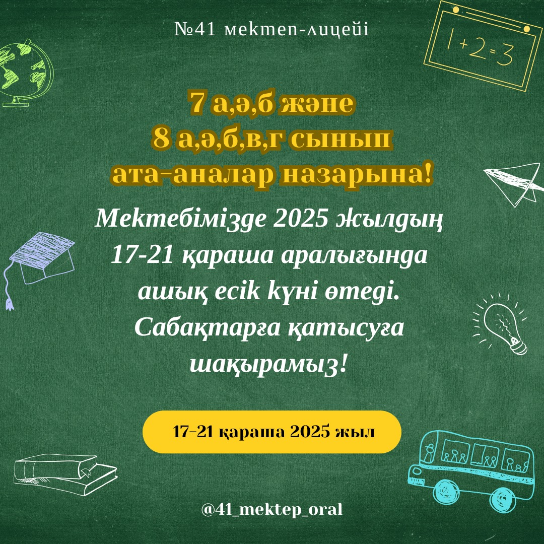 7 а,ә,б және 8 а,ә,б,в,г сынып ата-аналар назарына!