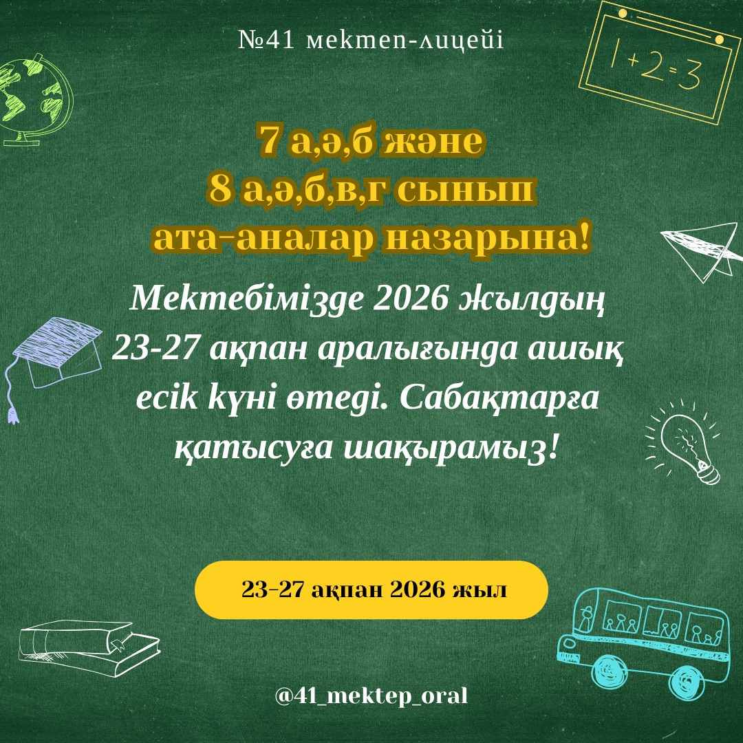 7 а,ә,б және 8 а,ә,б,в,г сынып ата-аналар назарына!