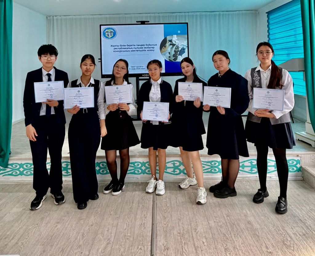 Мектепішілік кезеңіне 10 жоба бойынша 13 оқушы қатысты. І орын-1 Нұрланқызы Інжу, Зариф Амир (информатика секциясы) , ІІ орын -3, Досжан Айша (тарих секциясы), Утепқали Әділет (техника секциясы), Байыр Дамира (қолданбалы математика), ІІІ орын – 3, Берикова Алия (химия секциясы), Сәлімгерейқызы Зульхайя, Бейбіт Саида (коршаған ортаны қорғау және адам денсаулығы секциясы), Аитқали Нұрасыл, Ашикпаева Айжан (тіл білімі секциясы), алғыс хат-3 Меңдібай Нұрислам (өлкетану секциясы), Сагинғали Айкөркем (экономика секциясы), Темірғали Алимжан (этномәдениеттану секциясы). Оқушыларымызға қалалық кезеңіңде сәттілік тілейміз!